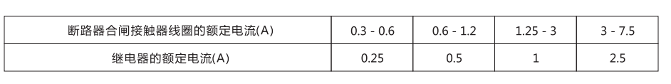 當(dāng)選擇裝置的規(guī)范時,中間元件電流繞組JZ(i)的額定電流應(yīng)小于斷路器合閘接觸器線圈的額定電流。具體可按表2解。
