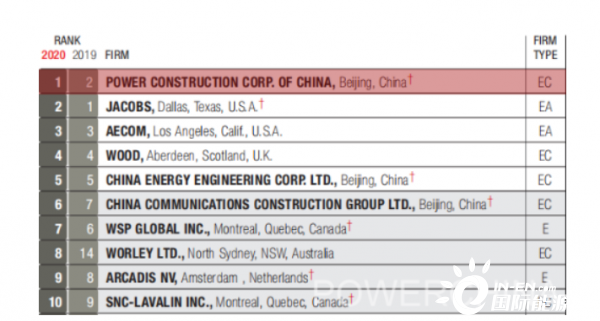據悉,在2020全球設計公司排名前20強中,共有5家中國企業,中國電建排名較去年上升1位,拔得頭籌。在2020國際設計公司前20強中僅有中國電建一家中國企業,且排名較去年上升4位。這也是中國電建連續6年在雙榜中“穩坐”中資企業頭把交椅。