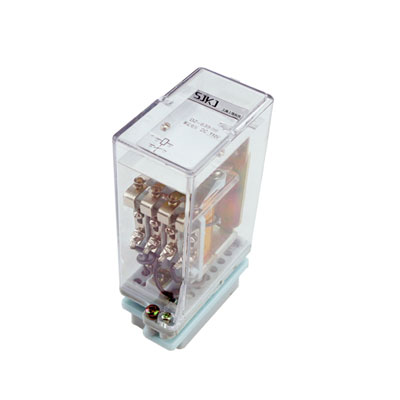 該繼電器是電磁拍合式繼電器,由電磁系統(tǒng),接觸系統(tǒng)組成。線圈通電時(shí),電磁系統(tǒng)產(chǎn)生磁場吸力 , 銜鐵吸向鐵芯。由銜鐵帶動動接觸組,使觸點(diǎn)回路轉(zhuǎn)換,該繼電器能提供2或4付大容量觸點(diǎn)。