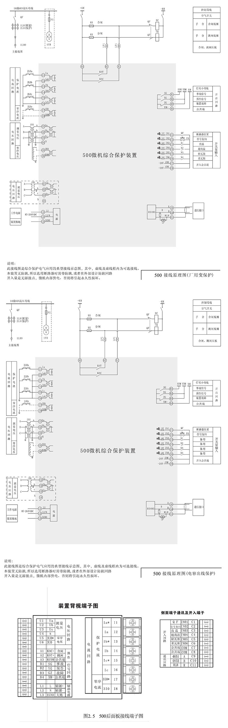 11-18端子為電流端子,其中I1-16端了為保護電流輸入端子,當保護采用兩相式保護時,13、14懸空。17、 18端予為零序電流輸入端子,帶*號為同名端,接線時請注意。