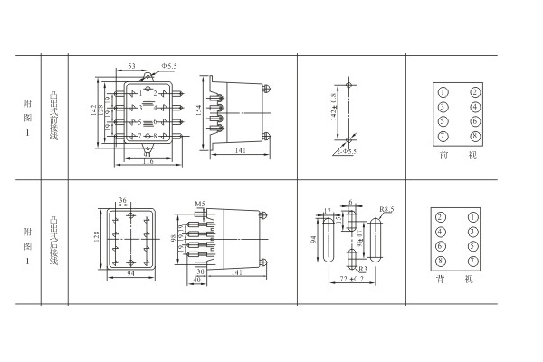 LY-33電壓繼電器內部接線及外引接線圖(正視圖):