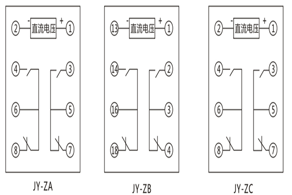 JY-ZA直流高低值電壓繼電器內部接線及外引接線圖: