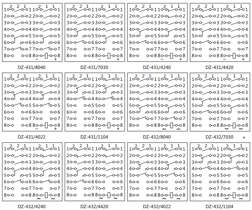 如:DZ-431/4022為4動合、0(無)動斷、2轉(zhuǎn)換、2過渡轉(zhuǎn)換,余類推。