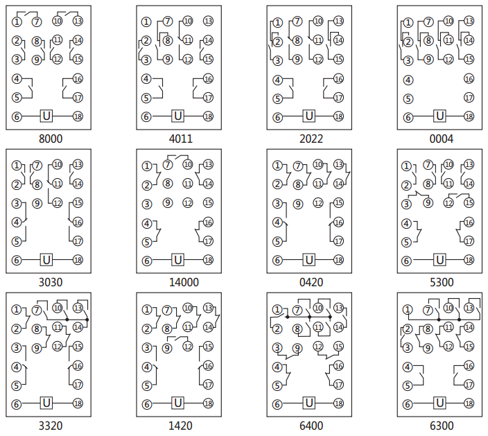 注:觸點形式由4位數字組成,左起第一位表示動合觸點數量;第二位表示動斷觸點數量;第三位表示轉換觸點數量;第四位表示過渡轉換觸點數量。