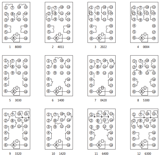 DZJ-20交流中間繼電器內部接線圖及外引接線圖(正視圖)
